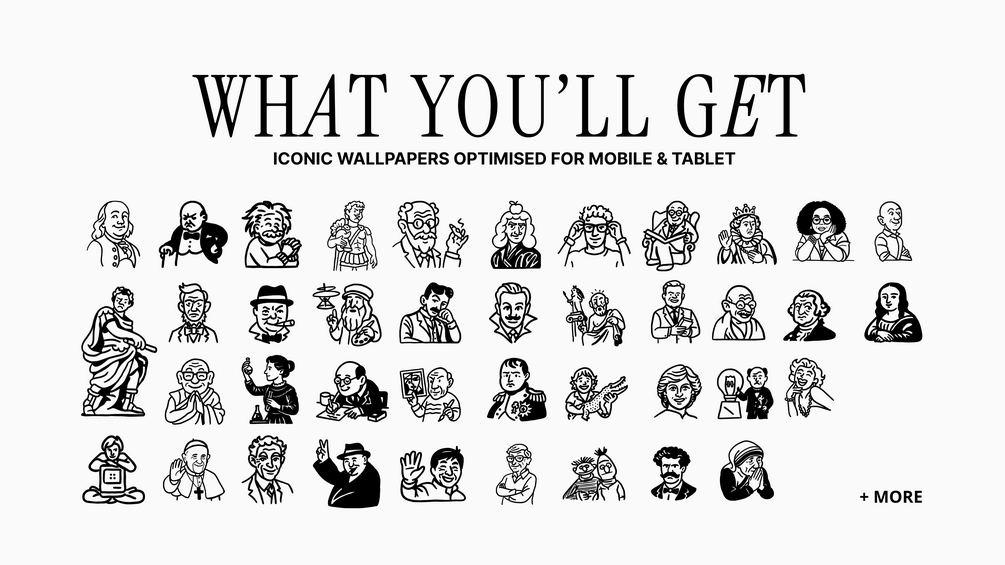 The Historic People Collection brings together minimalist design and thoughtful iconography—over 100+ carefully crafted wallpapers that turn your iPhone or iPad into a space of focus and inspiration.