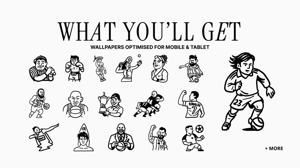 Introducing the Sports People Collection—a curated set of minimalist wallpapers inspired by iconic athletes and game-changers across eras. Each wallpaper pairs sleek design with distinctive sport-specific iconography, turning your mobile or tablet into a space of drive, focus, and momentum.